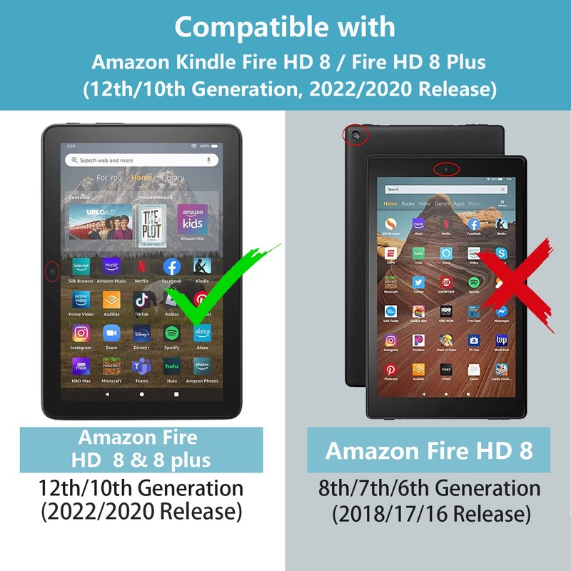 - 【Compatibility】Specifically designed for All-New Amazon Kindle Fire HD 8 & HD 8 Plus Tablet (Fits Both 12th Gen 2022 & 10th Gen 2020 Release); It will NOT work for any other model kindle device.