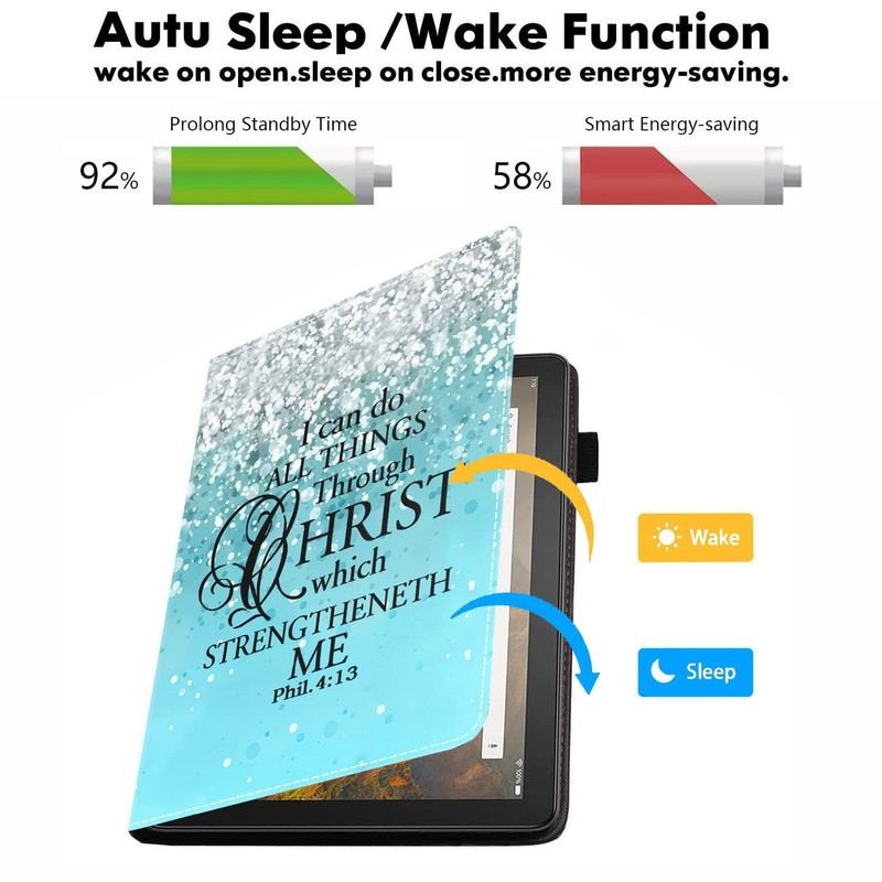 WEUIUJKILO Case for All-New Kindle Fire HD 8 & Fire HD 8 Plus Tablet (12th/10th Generation, 2022/2020 Release) - Bible Verse Philippians 4-13 Design Slim PU Leather Stand Cover with Auto Sleep Wake