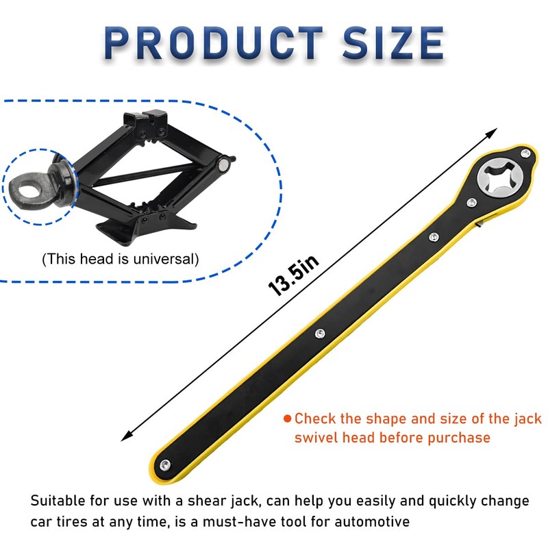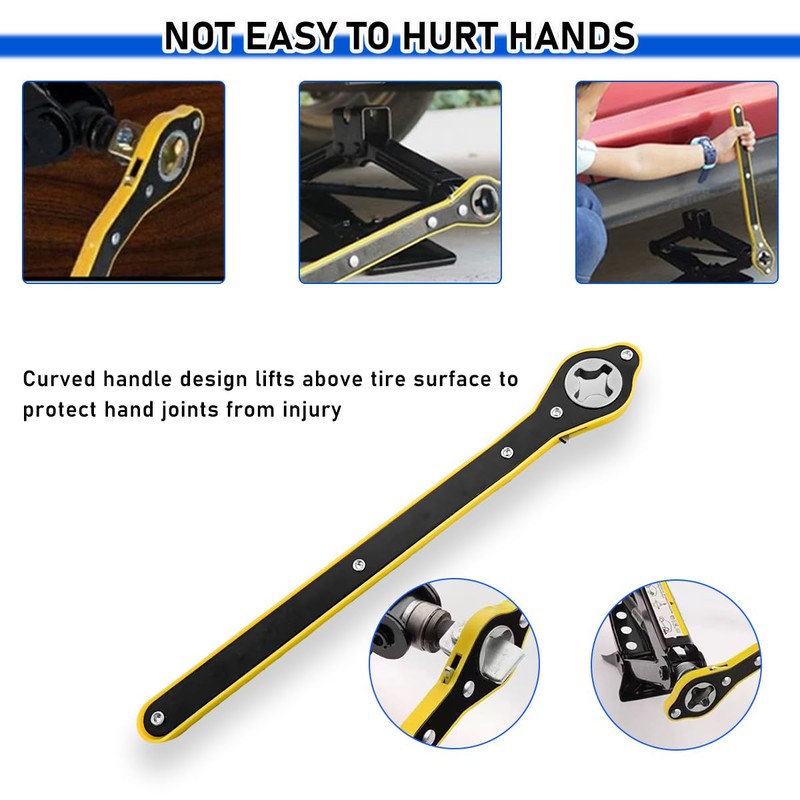 - 【Ideal Structure Design】: The curved handle design keeps your hands away from tires and jacks when turning the wrench, preventing them from being scratched and ensuring safe operation. Moreover, the 13.5 inches extended handle improves the ease of use.