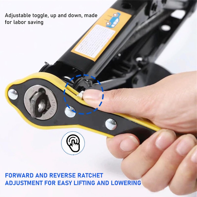 - 【Practical Wrench】: Ratchet wrench allows you to loosen or tighten the bolts by turning the wrench repeatedly to operate the jack up or down. It helps you to lift your car to the right height with the jack and quickly complete emergency tire replacement or other repairs.