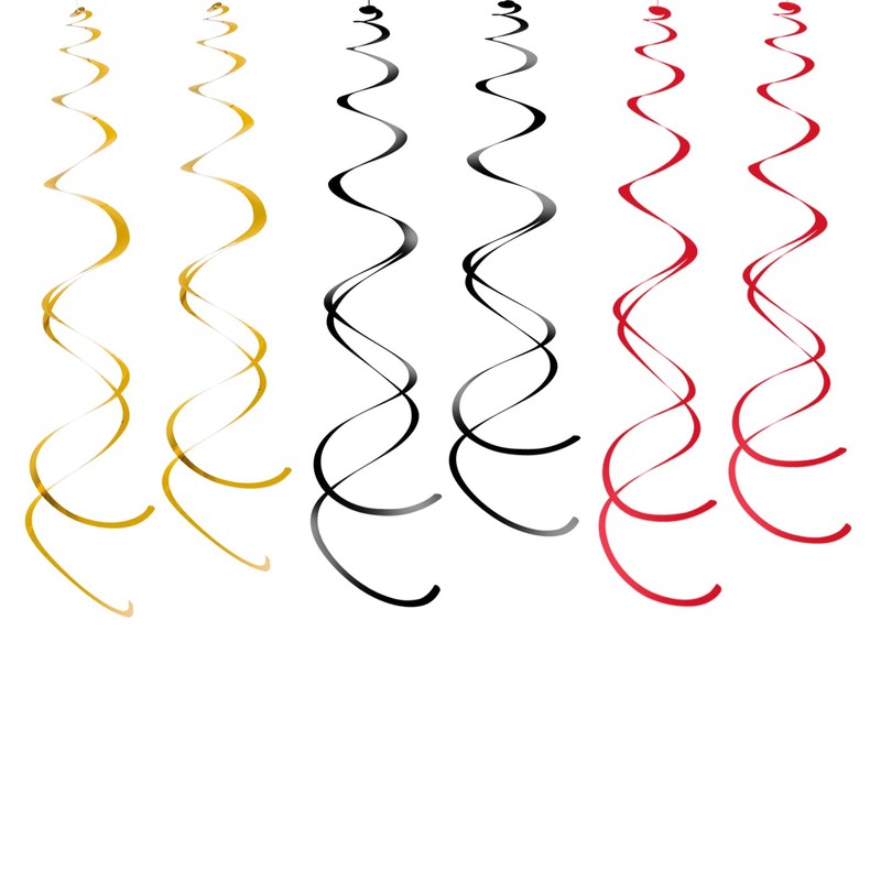 WEVEN Hanging Swirls Party Streamer Spiral Decorations for Ceiling (30pcs, Red, Black, Gold)