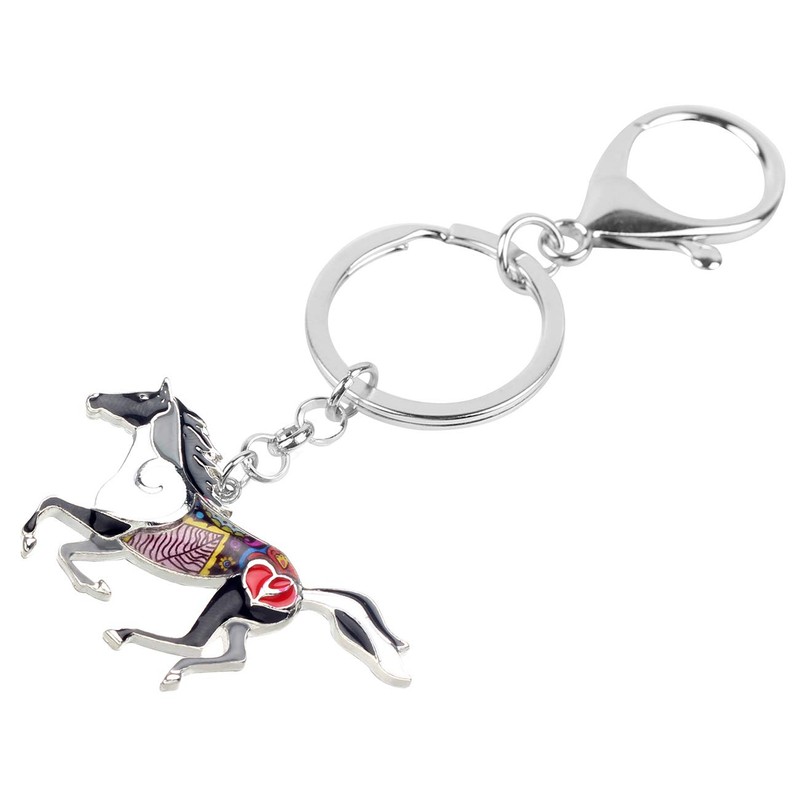 WEVENI Alloy Running Horse Keychain Accessories Enamel Jewelry For Women Girls Car Wallet Charms (Black)