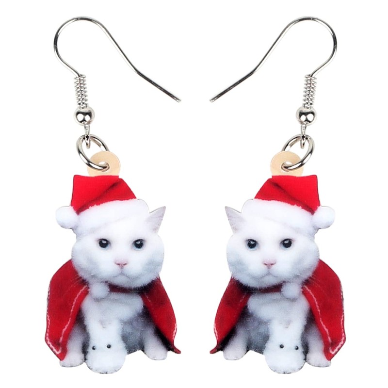 WEVENI Cute Acrylic Christmas Cat Earrings Dangle Drop Charm Pet Jewelry For Women Girls Gift, Acrylic, No Gemstone