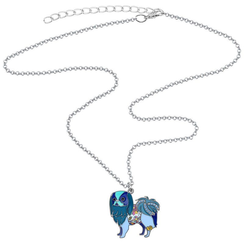 WEVENI Enamel Alloy Japanese Chin Dog Puppy Necklace Pendant Animal Pet Jewelry Gifts Design for Women Girls Ladies blue