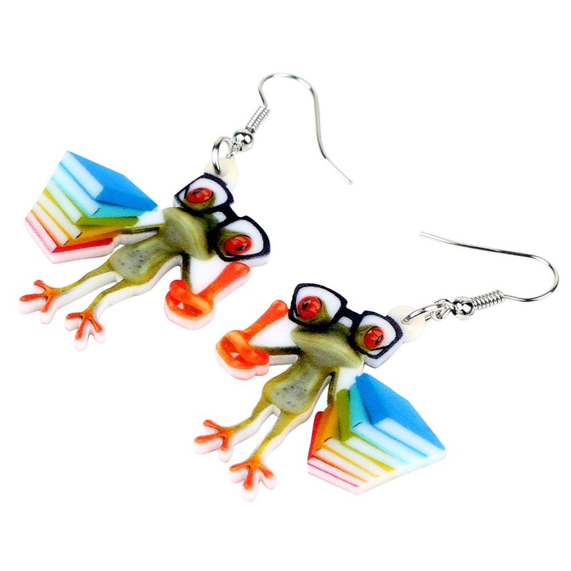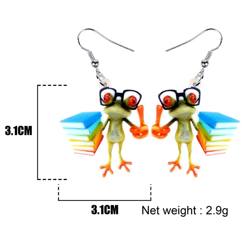 - Los pendientes de rana están hechos de acrílico ligero. Son totalmente respetuosos con el medio ambiente.