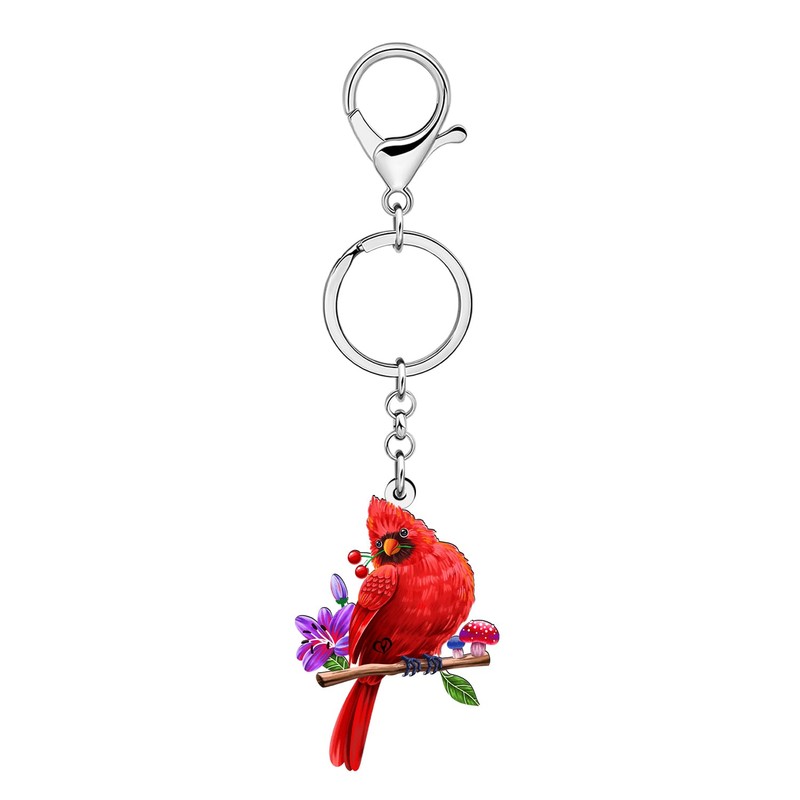 WEVENI Red Cardinal Gifts Acrylic Bird Keychain Flower Mushroom Stuff Key Chain Accessories Bird Lover Gifts for Women Girls (Red)