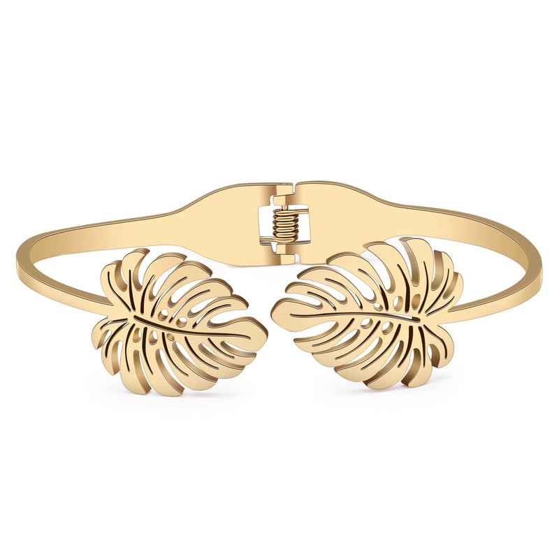 WEVENI Stainless Steel Palm Leaf Bracelet Fall Maple Leaves Cuff Bangle Jewelry 18k Gold Plated Fall Charms Accessories Gifts for Women Girls (Palm Leaves Gold Plated)