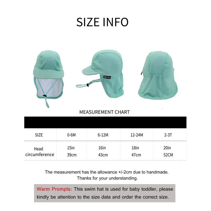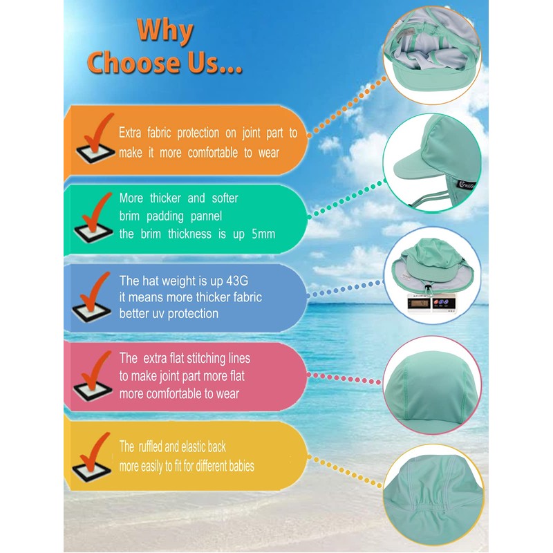 - 【Full Protection】Our UV hat has a 5.5 cm wide brim that will never fall off. So the baby sun hat provides better protection for your baby's face, ear and neck.