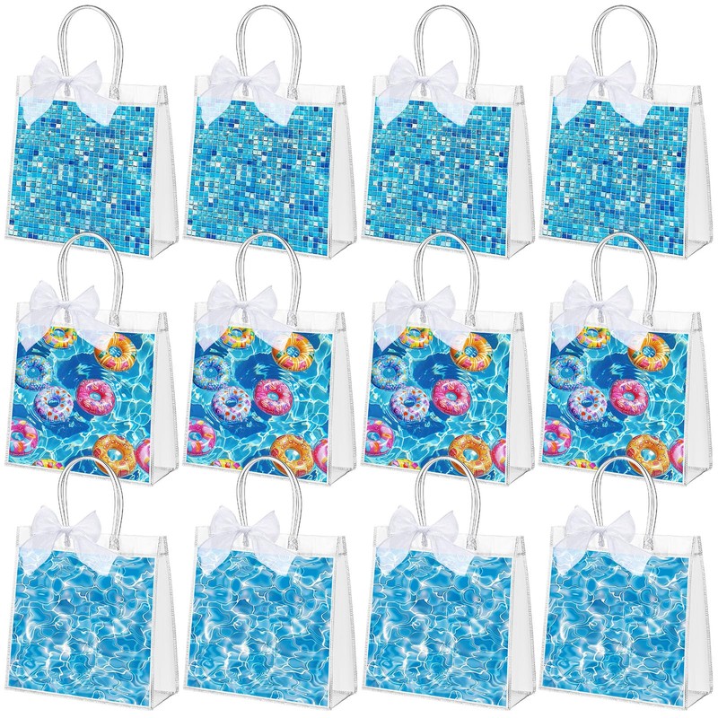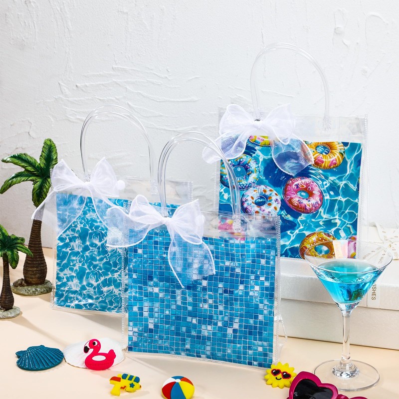 - Vibrant Charm Meets Functionality: crafted from PVC material and boasting a colorful summer beach theme, these clear favor bags with handles are ideal for summer parties; You will satisfy about bags' durability and eye catching appeal, making them a must have for any poolside gathering