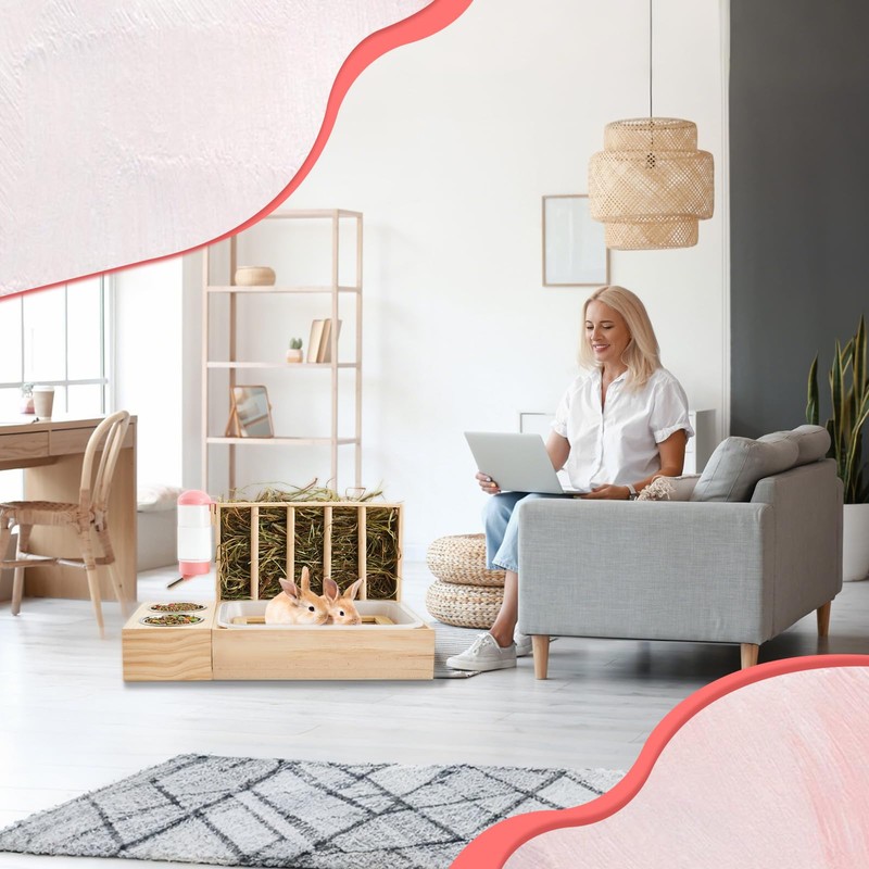 - Easy to Clean and Maintain: this bunny litter box is simple to disassemble and includes a detachable litter pan that lifts out easily for quick cleaning; The stainless steel foot pads contribute to a hygienic space, ensuring your rabbit litter box stays clean and fresh