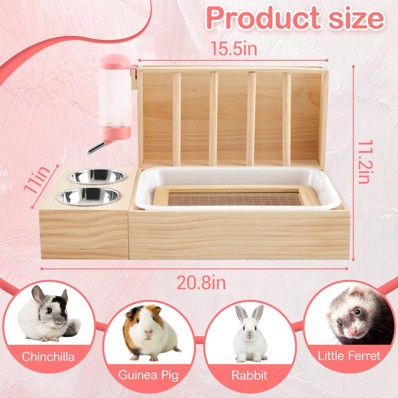 - 4 In 1 Functionality: design for complete pet care, this rabbit litter box with a hay feeder offers a 4 in 1 solution that addresses all your small pet needs: hydration, hay consumption, food intake, and waste management; Save time and effort with this all inclusive bunny litter box, ideal for efficient pet care