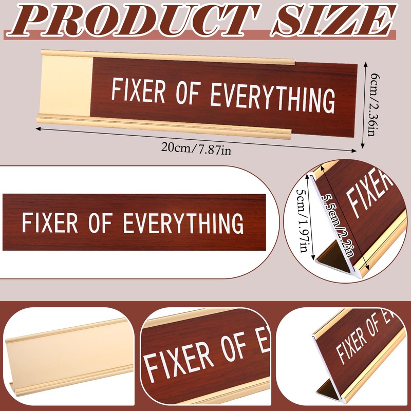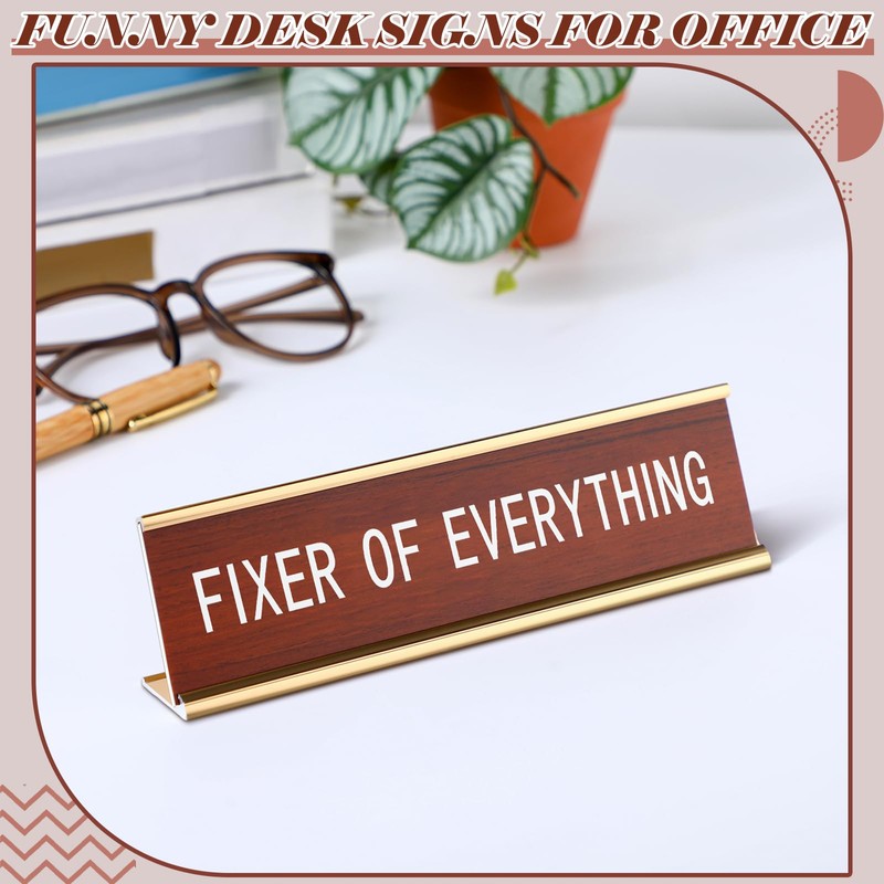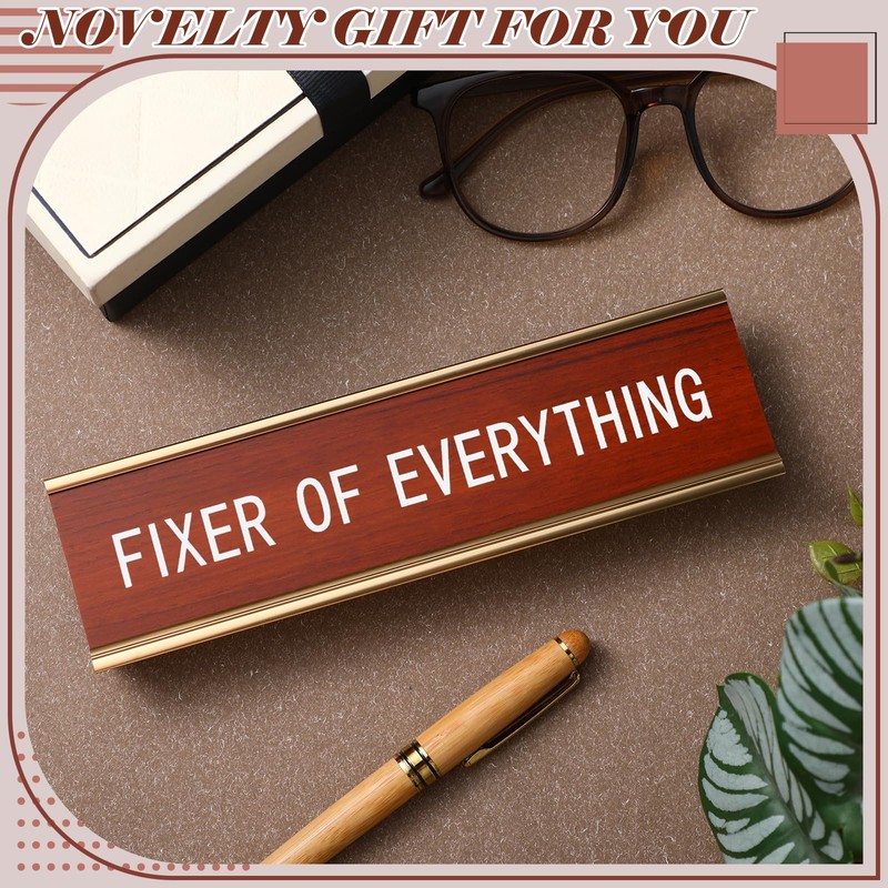 - Novel Gift: are you looking for a novel gift for your colleagues, friends or family? Fixer of Everything Desk Name Plate would be a good choice; Give Fixer of Everything Desk Name Plate as a personalized gift to teachers, colleagues, employees, family members or as a gag gift to boss, which can add a touch of fun and personality to their workspace