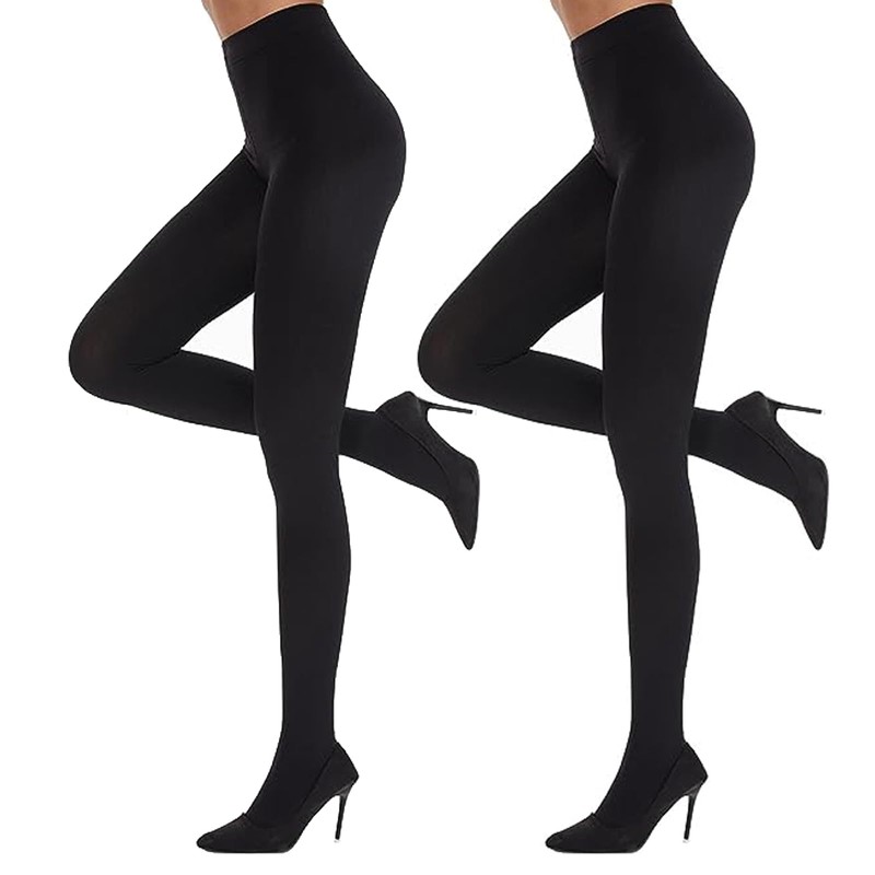 Weziarer 2 Pairs Fleece Lined Tights for Women - 100D Opaque Warm Winter Pantyhose Leggings (Black2,M)