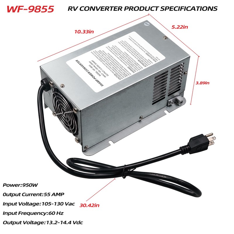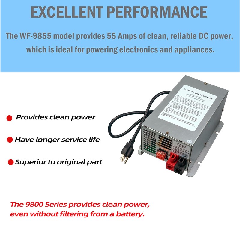 - 【Lead-Acid Battery】WF-9855 55 Amp Deck Mount Power Converter Charger Compatible with RV Trailer Camper 9800 Series WF-9855 WF-9855-MBA WF-9855-AD-MBA WF-9855AN