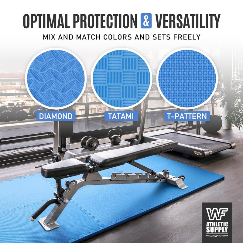 WF Athletic Supply 48 SQ.FT Diamond Pattern 3/4-Inch Thickness Interlocking Exercise Foam Mats, Extra Thick Eva Foam Flooring Tiles, Gym Fitness Equipment Mat, Home Protective Flooring Cushion, Blue