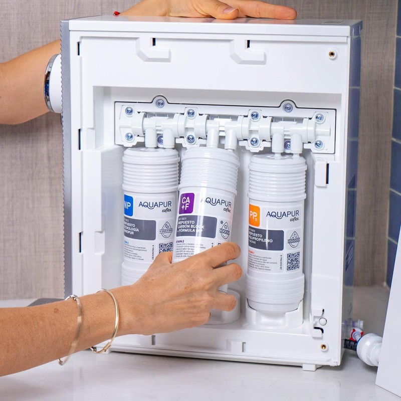 - Purifica hasta 2,400 litros o hasta 8 meses de uso.