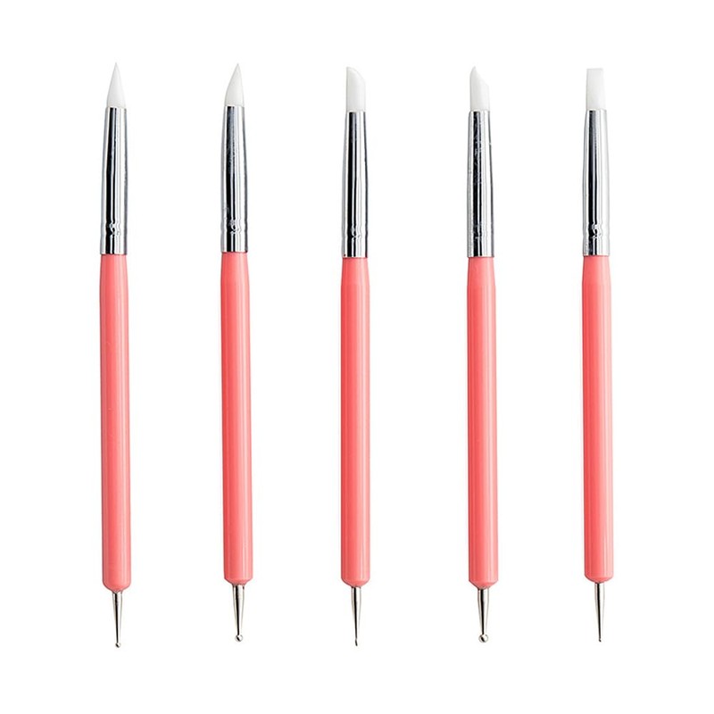 WFGKPXC シリコンブラシ ドットペン ネイル 筆 5本セット シリコンブラシ 爪用ペン ネイルアートツール ドット棒 簡単 耐久性 彫刻 ポイントドリル 塗装 マニキュアツール ネイル用品 【 ピンク 】