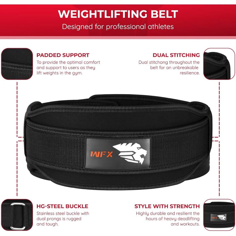 WFX Weight Lifting Belt Gym Fitness Double Strength 5.5 Inch Neoprene Padded Workout Belt Back Lumbar Support Training Bodybuilding Powerlifting Squats Deadlifts Lifting Exercise for Men (Black, M)