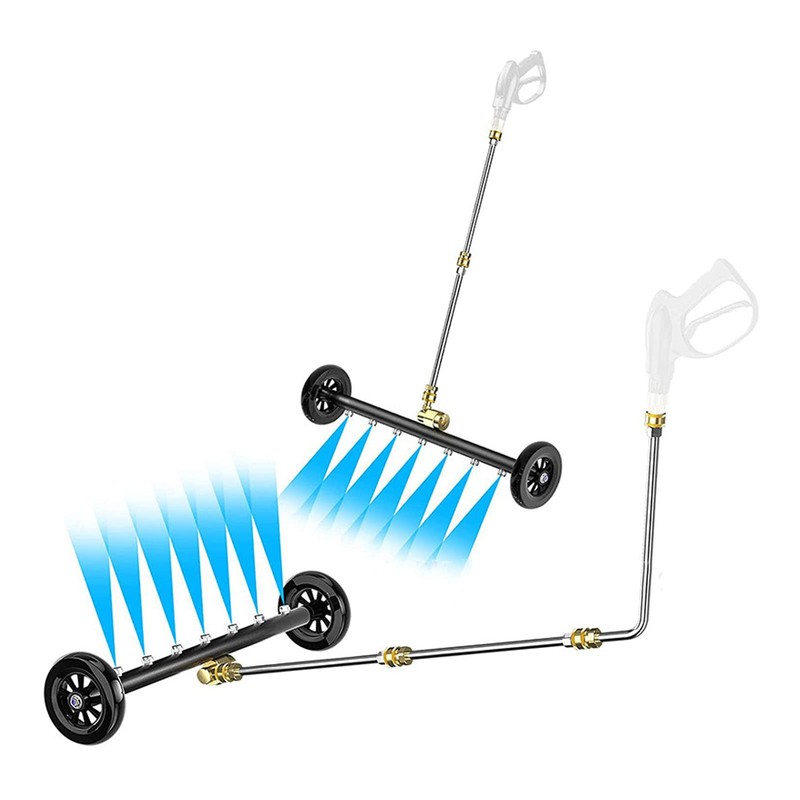 WGFOIP Under Car Water Broom, Stainless Steel Nozzles 1/4 Inch Connection Undercarriage Pressure Washer Quick and Even with 3 Extension Wands for Courtyard (7 Holes)