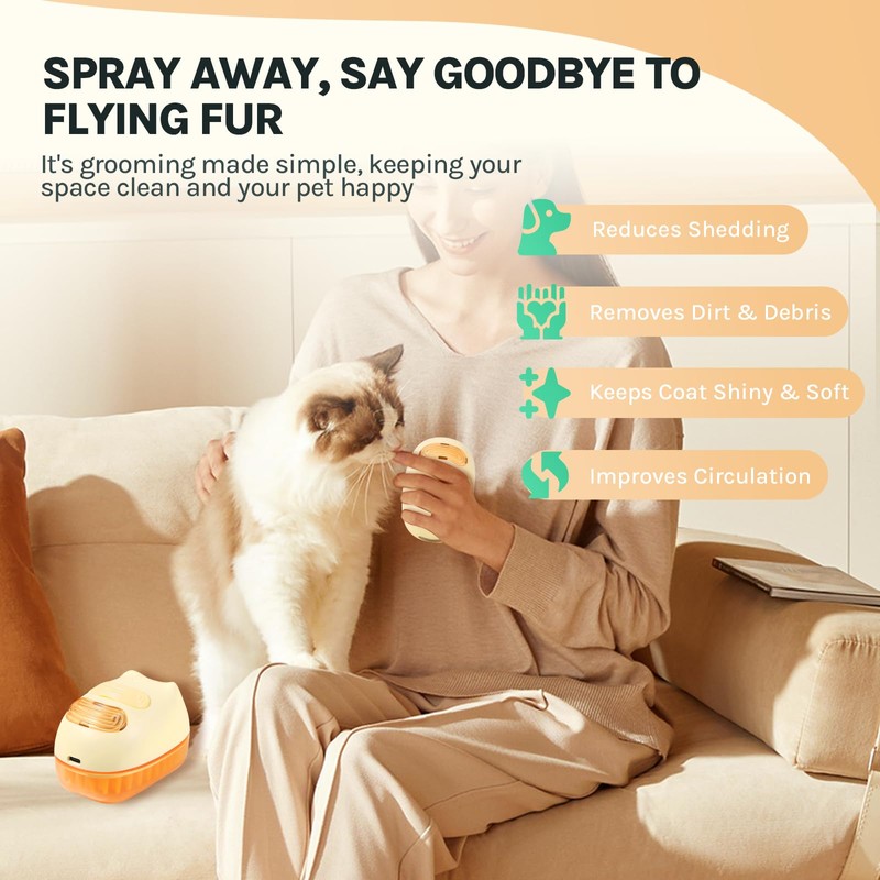 - 【Innovative Spray Grooming: No More Flying Fur, Clean as a Bath】Revolutionize your pet's grooming with our innovative spray technology that minimizes flying fur while cleaning. Just add water and a bit of essence to give your cat a bath-like deep clean during each comb-through.