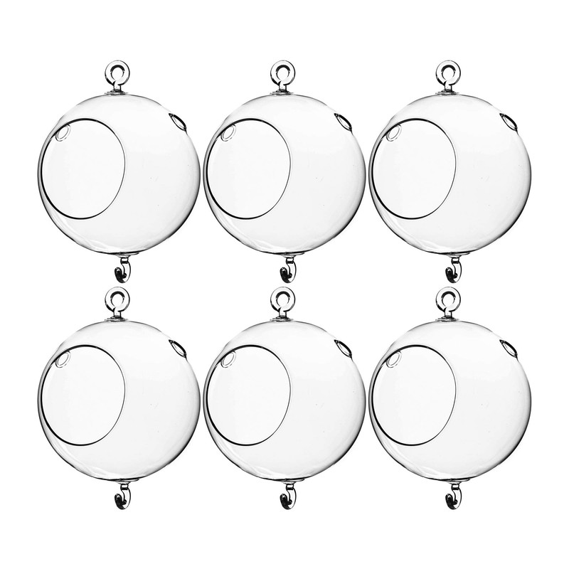 WGV Hanging Terrarium Globe, Width 5", Height 7", Double Hook, DIY Air Succulent Planter, Clear Glass Vase Orb, Candle Holder for Windowsill Outdoor Garden Decor, 6 Pieces Bulk