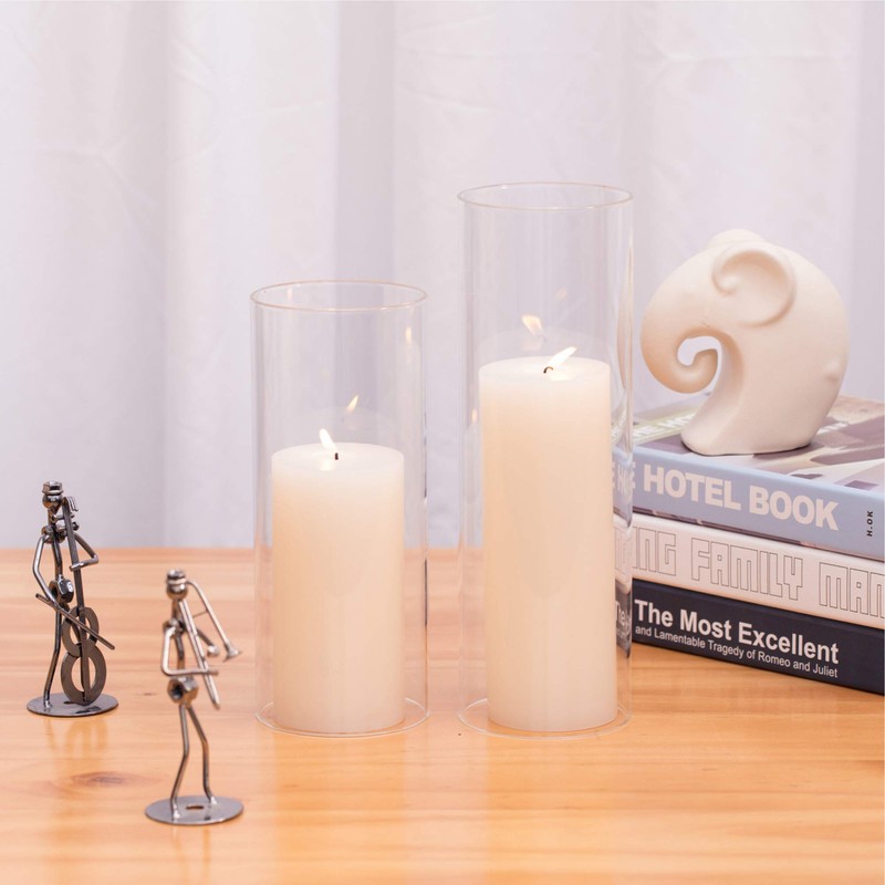 WGVI Hurricane Candle Holder Sleeve, Wide 3", Height 14", 2 Pieces, Clear Glass Cylinder Open Both Ends, Chimney Shade Tube (HST0314_2pc)