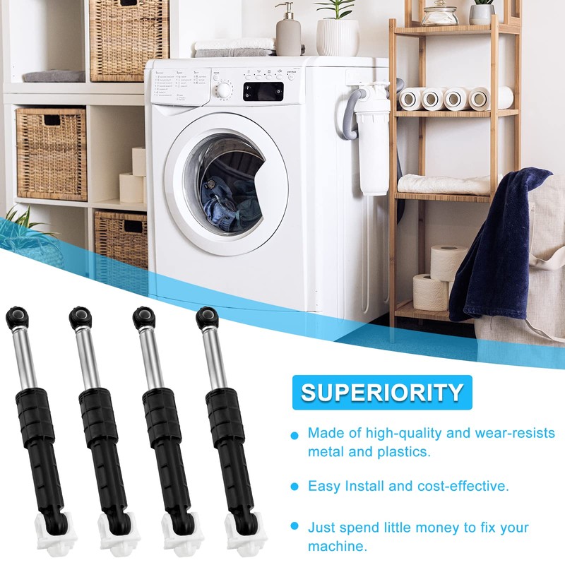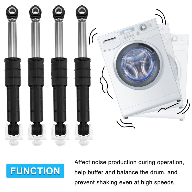 - 【 EXCELLENT PERFORMANCE】WH01x10343 Washing Machine Shock Absorber Kit. Includes (4) shock absorber (4)mounting bracketsand (4) mounting pins.Shock absorbers play an important role in washing machines:they affect noise production during operation, help buffer and balance the drum, and prevent shaking even at high speeds.If your washer is running erratically, is running noisy or is running shaky, shock absorber replacement could solve your washer's problem.
