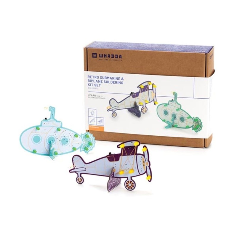Whadda Electronic Kit for Learning to Solder, Submarine, Double Decker, Retro Design, DIY Kit for Beginners and Advanced Users, 2 Gadgets with LEDs, Experiment Set Children Adults, WSL22SET2