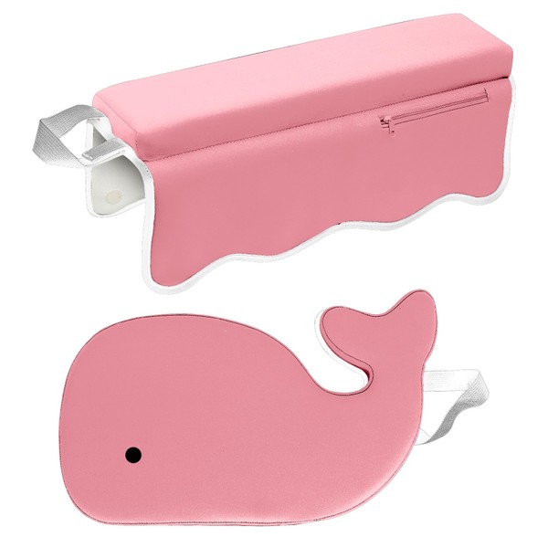 Whale Baby Bath Kneeler and Elbow Rest Set, Bath Support with Memory Foam, Bath Kneeler Pad with Storage Pocket (Pink)