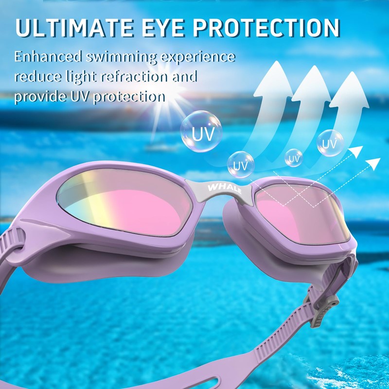 Our swim goggles boast an innovative design that combines style with functionality, ensuring a comfortable fit and advanced anti-fog features. Each pair is crafted with high-quality materials, ensuring durability, comfort, and long-lasting performance. Whether you're a seasoned swimmer, a fitness enthusiast, or someone enjoying a leisurely dip, WHALE offers a versatile collection to suit every need, catering to men, women, and children.