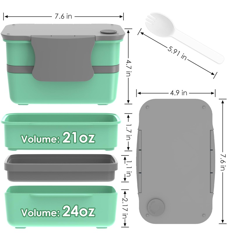 - 【Double the Space, Double the Versatility】 While other lunch boxes only let you put everything in one container or carry multiple containers, this double-layer design bring portability to meal with 24oz (710ml) of main dishes space below and 21oz (621ml) of sides/snacks compartment above. Offering perfectly portioned storage that keeps foods separated yet conveniently together. Unlike cheaper plastics, this thick, BPA-free PP lunch container withstands daily use without staining or warping, minimizes odor transfer between layers.