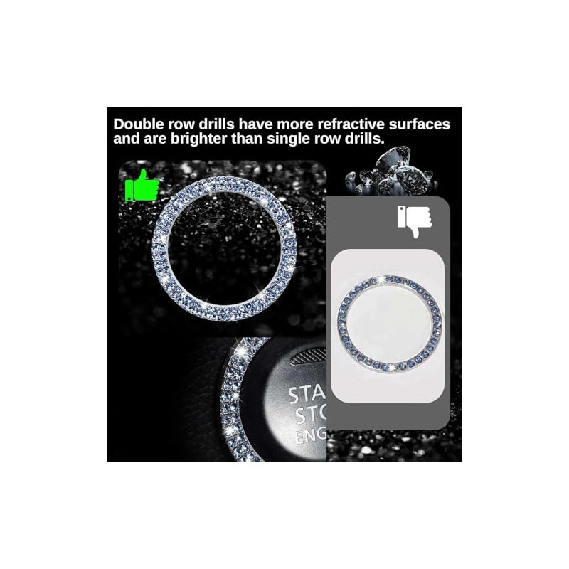 - EASY TO INSTALL Each crystal ring comes with 1 PC round tape, you can stick one side on the ring , then peel off the protect sheet from another side and press it on the car engine start/stop button firmly.