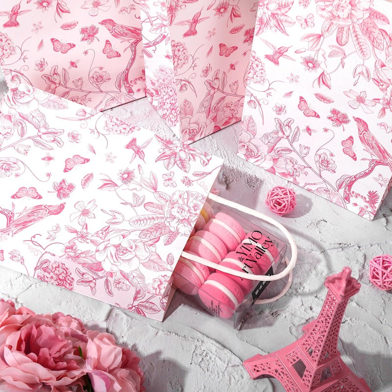 - Elegant Design: Our paper gift bags are patterned with floral and birds mainly in pink and white, chic and attractive, will fit to various occasions
