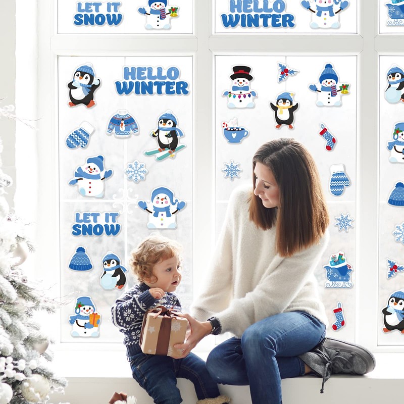 - Winter Design - Our thick gel clings are designed in winter theme, mainly colored in white and blue, patterned with cute penguin, snowman, snowflake, sweater, letter HELLO WINTER, LET IT SNOW, etc., they can enhance the winter atmosphere at once, add a joy to your holiday.