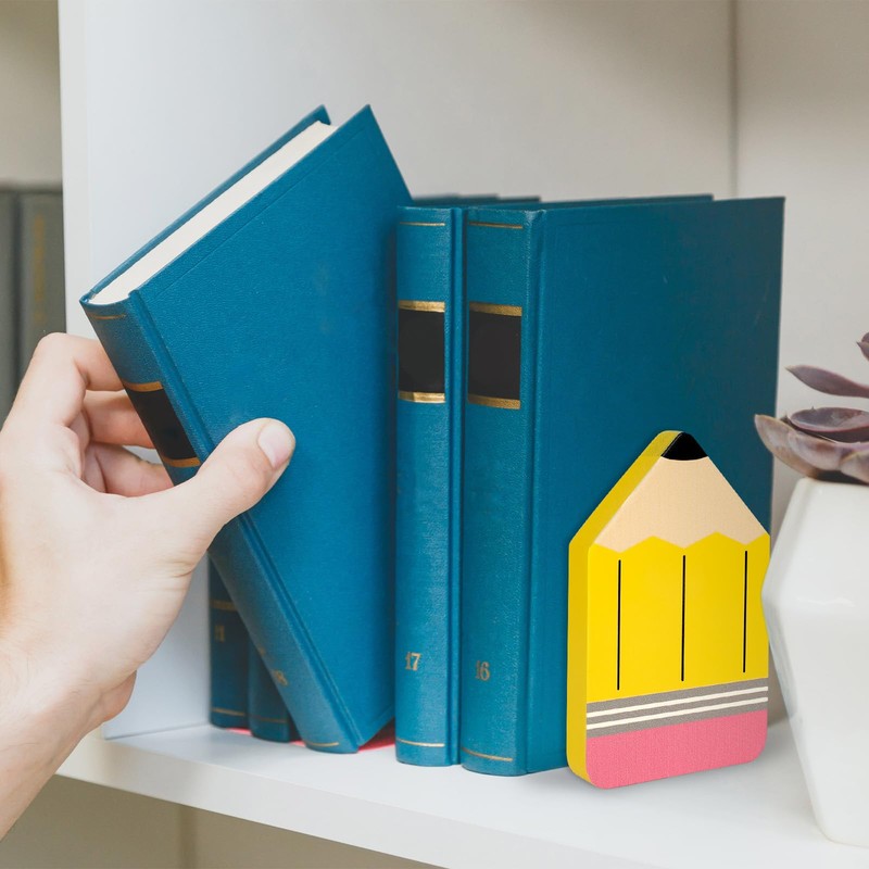 - Non-slip & Practical - The bookends designed in “L” shape, and the overall style is back to school pencil theme, and the bottom non skid metal pad can prevent your books from sliding, and keep them neatly and upright on your desk or bookshelf, practical and organized.
