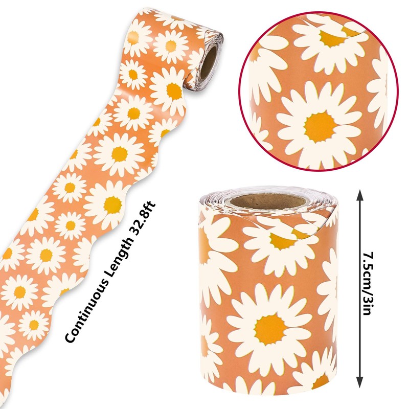 Whaline 32.8ft Daisy Flower Bulletin Board Borders Boho Flower Die-Cut Rolled Border Trim for School Classroom Office Chalkboard Decoration