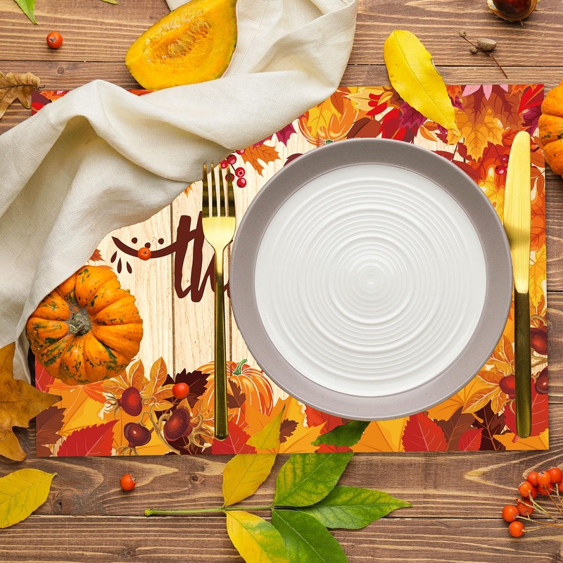 Patterned with fall leaves and grateful words, vivid design makes them look rustic and delicate, great table accessories for holiday parties.