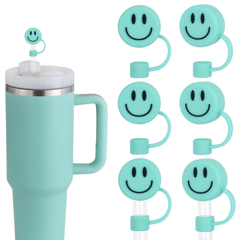 The straw toppers are patterned with smile face and colored in mint green, exquisite and attractive, sufficient to meet your daily and replacement needs, make your life full of happy feelings.