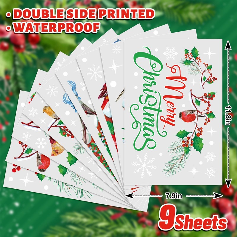 - The Package Includes: 9 sheets Christmas theme window clings, they will offer sufficient quantity and delicate design to meet your needs, you can also share with your friends and family