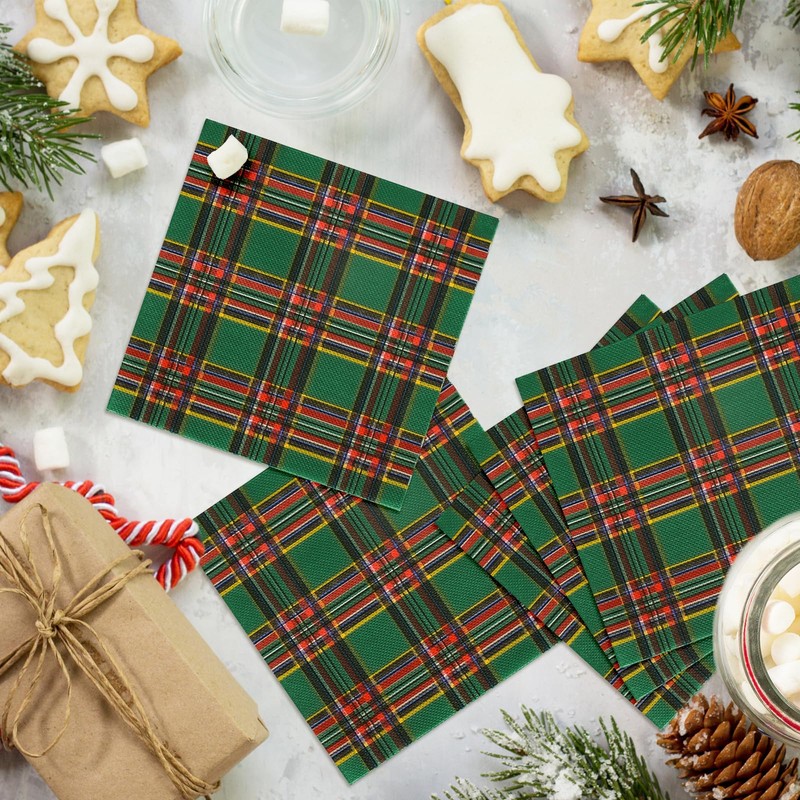 Whaline - Paquete de 80 servilletas de papel a cuadros desechables de Navidad, servilletas decorativas de cuadros rojo y verde para decoración de mesa, 6.5 x 6.5 pulgadas