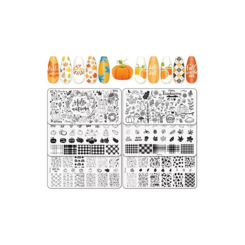 Ideal para personas: ideal para artistas de uñas principiantes y profesionales con experiencia para diseñar su propio estilo otoñal de Acción de Gracias en casa o en el salón. Estas placas para decoración de uñas crean un arte de uñas único que se puede regalar como regalo navideño a profesionales y entusiastas del arte de uñas DIY.