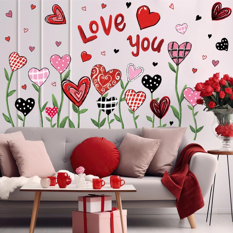 - Heart Flower Design: Our valentine’s day theme wall stickers are designed with various love hearts and vines, look like flowers when finished, printed with words of love you, vivid and delicate, will nicely increase romantic atmosphere