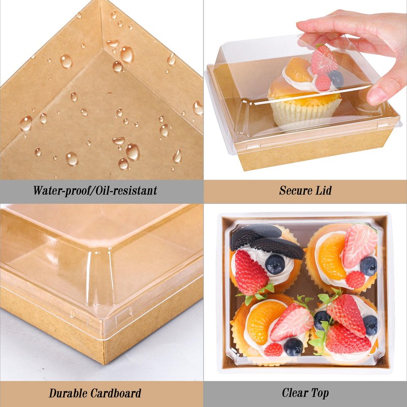 - Perfect Size: These 5-inch boxes can fit a small charcuterie plate, a slice of cake, 4 hot cocoa bombs, 6 chocolate strawberries, 2 sandwiches and can also be used for sliced cake, sandwich, sushi rolls, pastries, salads, fruits, cookies, chocolate, etc. The raised lid not only provides more space for food, but also insulates dust.