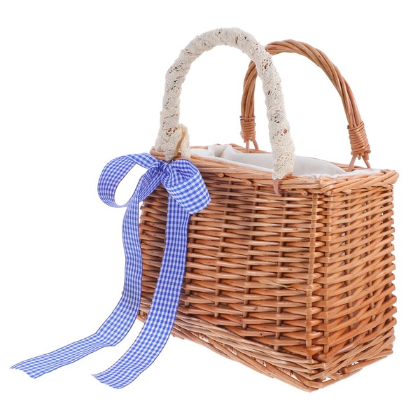 WHAMVOX Elegant Rattan Flower Basket Handmade Children's Woven Basket Square Handle