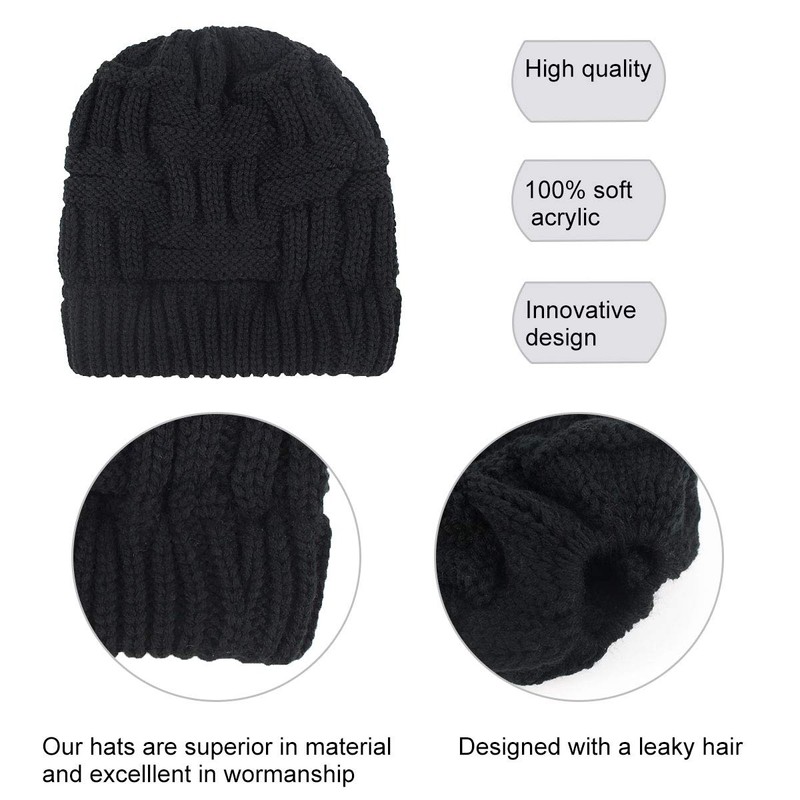 - Unique design:the stretch ponytail beanie hats are designed with ponytail hole for leaky hair, which makes you look smart and fresh. And it catches up with the fashion trend of cable knitting, perfect for high tail and messy bun