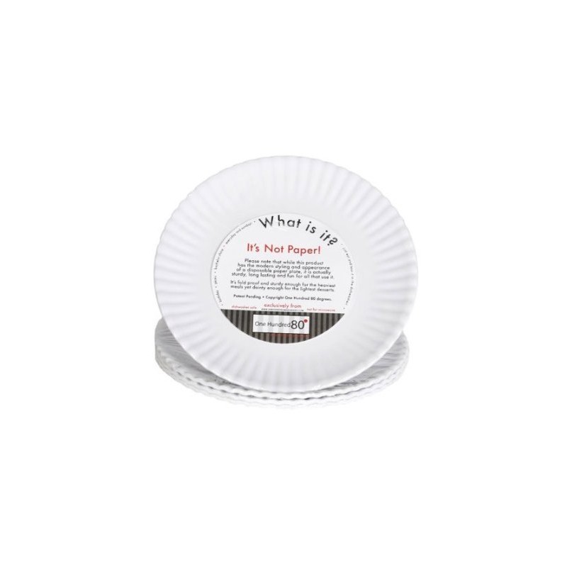 - Made of Melamine which is washable and reusable. Made to look like traditional white paper plates but they are not paper