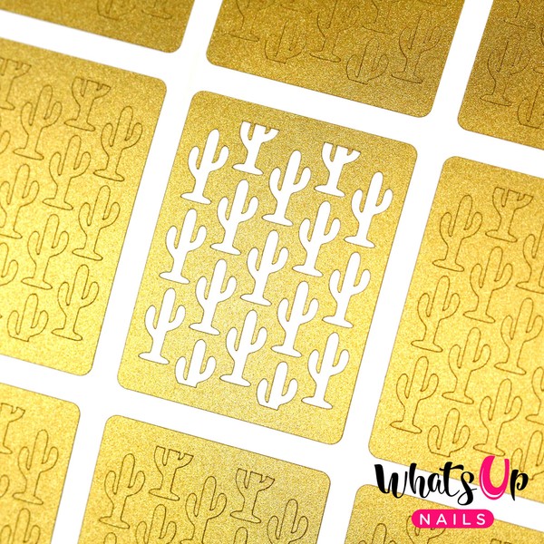 Whats Up Nails - Cactus Vinyl Stencils for Nail Art Design (2 Sheets, 24 Stencils Total)