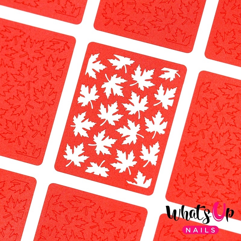 Whats Up Nails - Maple Leaves Vinyl Stencils for Nail Art Design (1 Sheet, 12 Stencils)