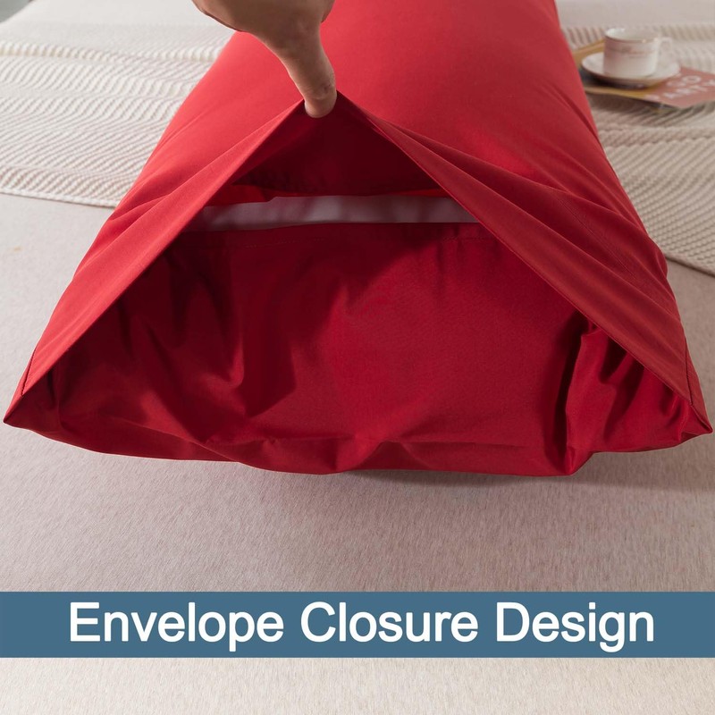 WhatsBedding Body Pillow Cover Cotton Fabric, Long Pillow Case Breathable & Skin-Friendly, Envelope Closure - Red (21x54 inch)