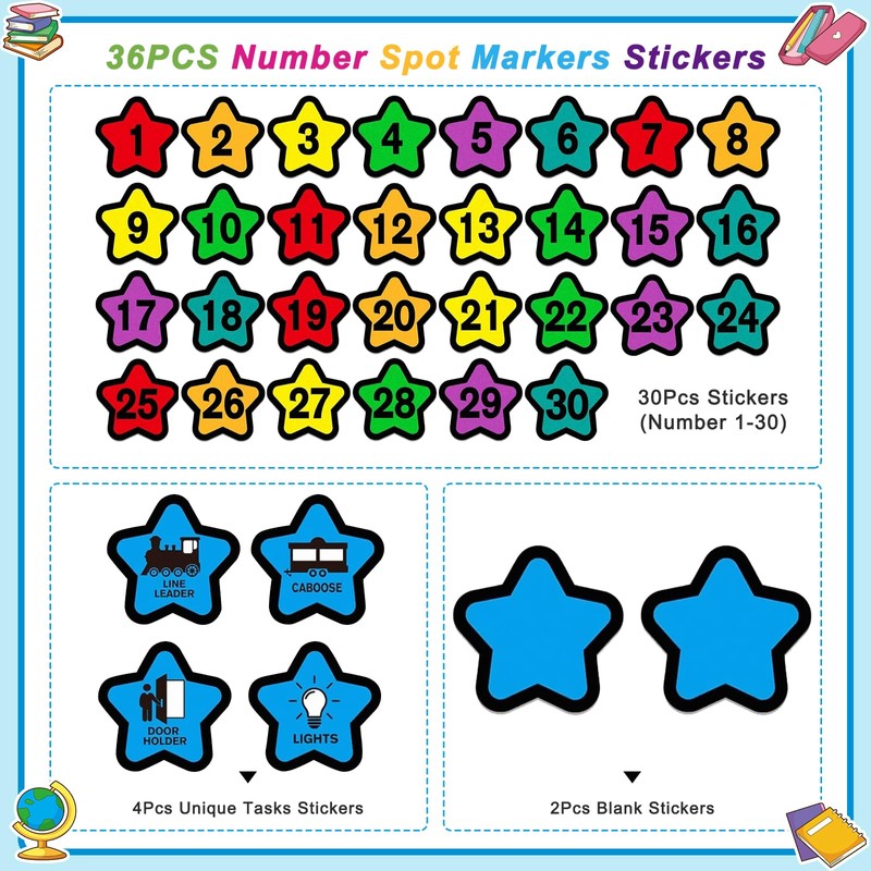 - 【Line up Spots for Classroom Floor】: Enhance your organization with floor number stickers for classroom! This sticker set features 36 star number line-up spots from 1 to 30, along with 4 unique task stickers and 2 blank stickers for personalized use. Ideal for classroom floor decorations and essential teacher supplies, these floor stickers guarantee a well-organized learning space and precise seating arrangements.